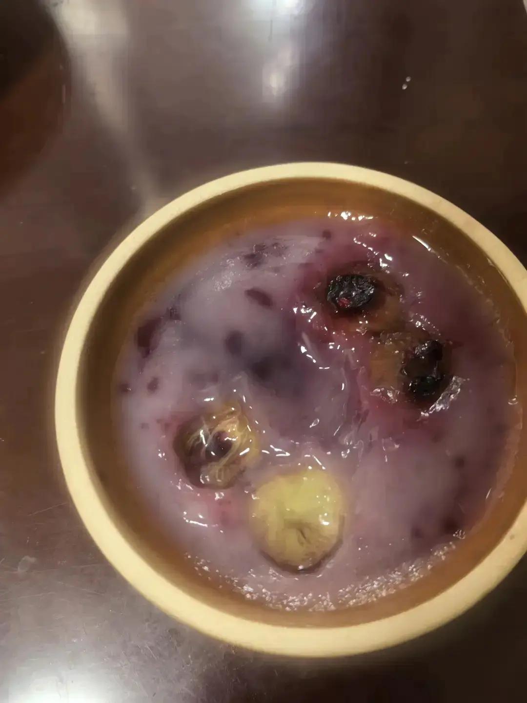 配料:木薯淀粉100克,水200克,白糖30克,蓝莓2-6粒,葡萄干1-8粒,蓝莓酱少...