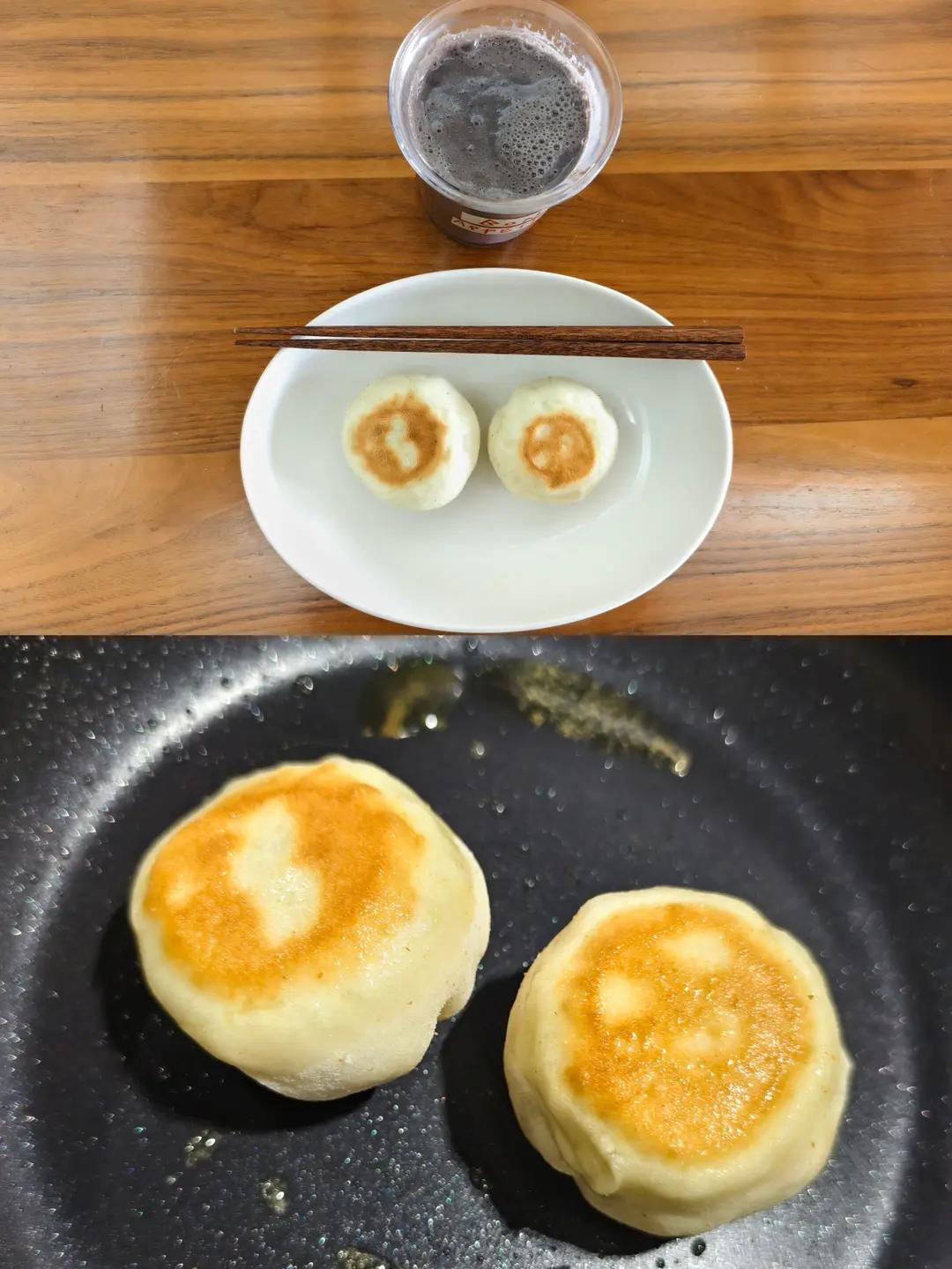 早上起来包两个做成水煎包,其它包好在锅里二发,等吃完...