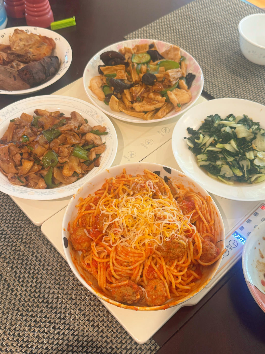 火锅没吃完的食材烫熟了,第二天叮热做成麻辣拌,也很好吃~