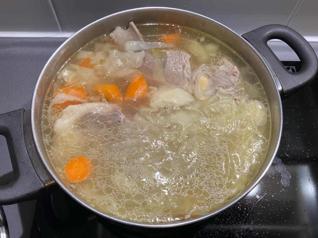 羊肉、牛心包菜、胡萝卜、粉丝做一个汤,十分好喝!很是鲜甜😋