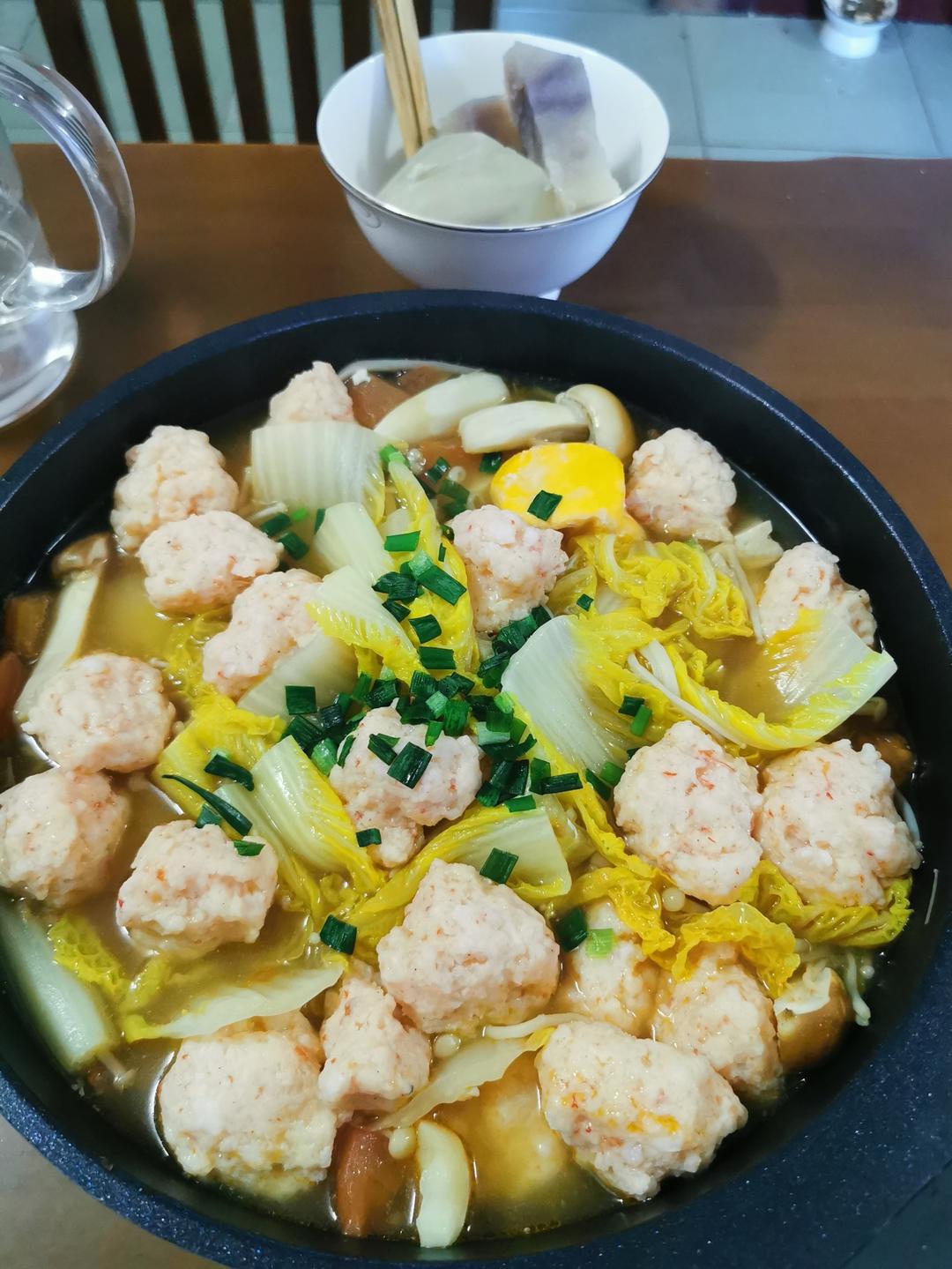 减脂餐,虾肉丸,娃娃菜,蘑菇,蒸红薯