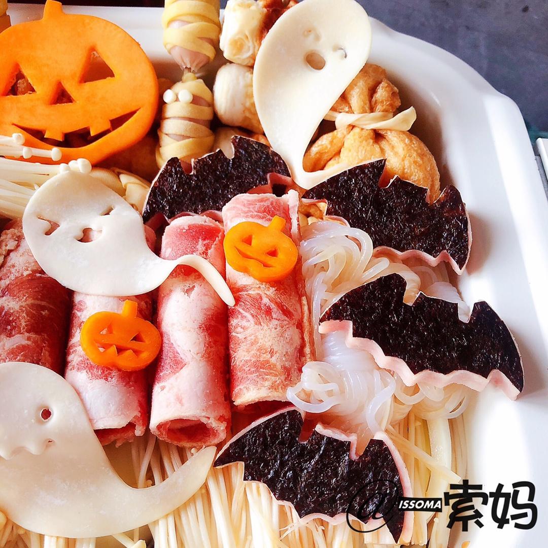 今日食材爆表了😁安格斯牛肉➕娃娃菜➕金针菇➕鱼竹轮➕鱼籽袋➕魔芋丝➕饺子皮👻➕香肠面条木乃伊➕午餐肉🦇➕南瓜🎃……手工雕...