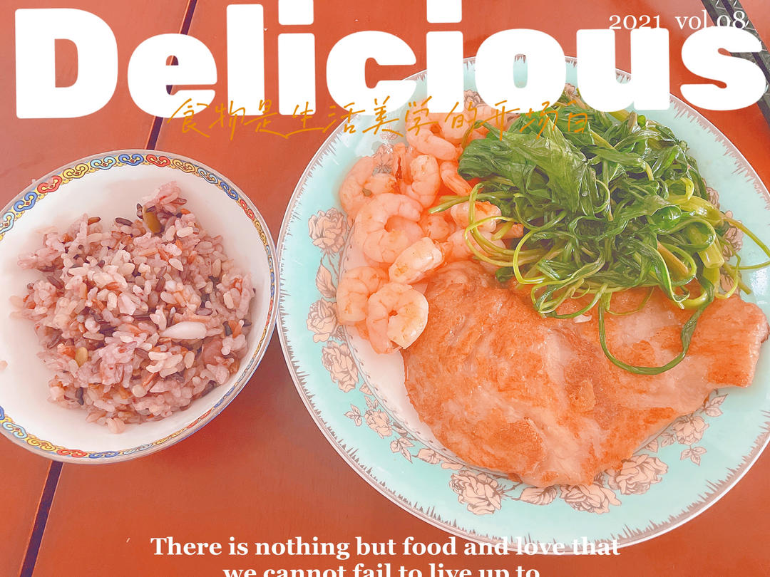 杂粮饭真的容易饱腹,但是吃了好多菜~😂