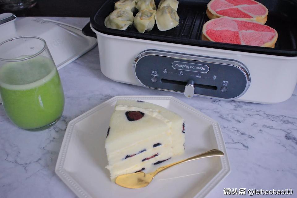 早安!煎馄饨,吐司,黄瓜葡萄汁,豹纹蛋糕,附两张睡觉的小可爱~~