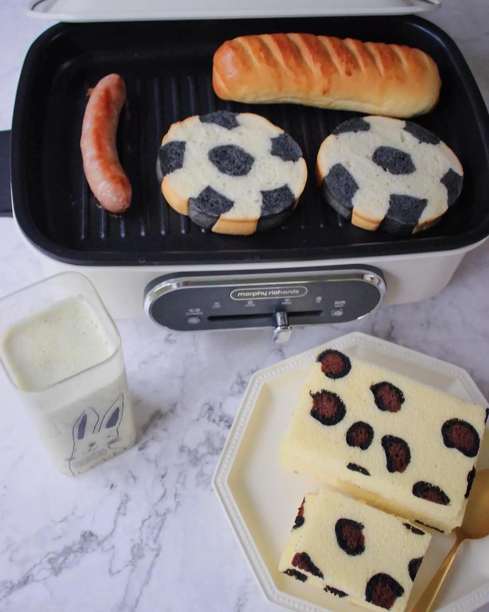 早安!吐司,维也纳面包,香肠,豹纹蛋糕,超级甜的葡萄牛奶~~🌻🌻🌻