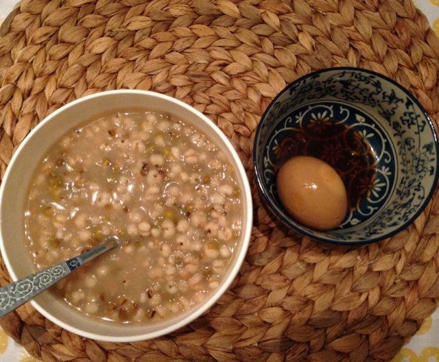 蜂蜜绿豆薏仁粥,黄金搭档依旧是卤蛋一枚