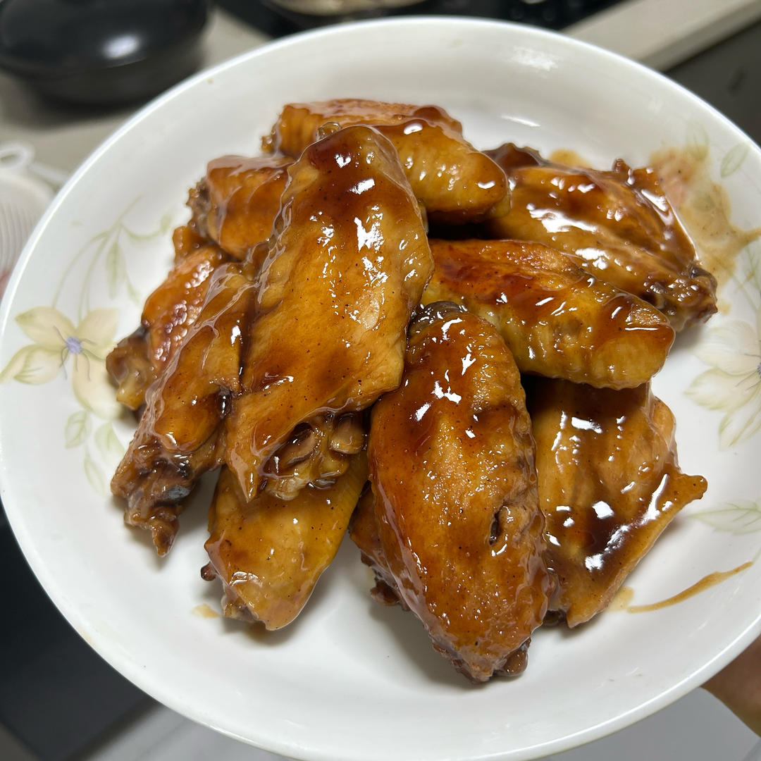 好吃晕了!家里没有八角桂皮,改为放一勺潮汕卤汁(配料含八角桂皮),咸甜融洽,鸡翅脱骨香脆,太美妙了(