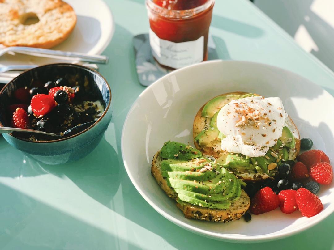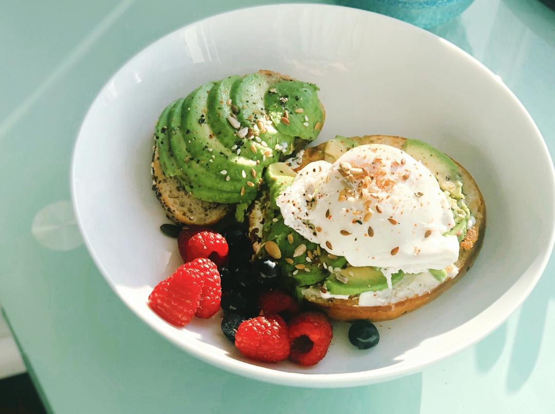 avocado poached eggs bagel