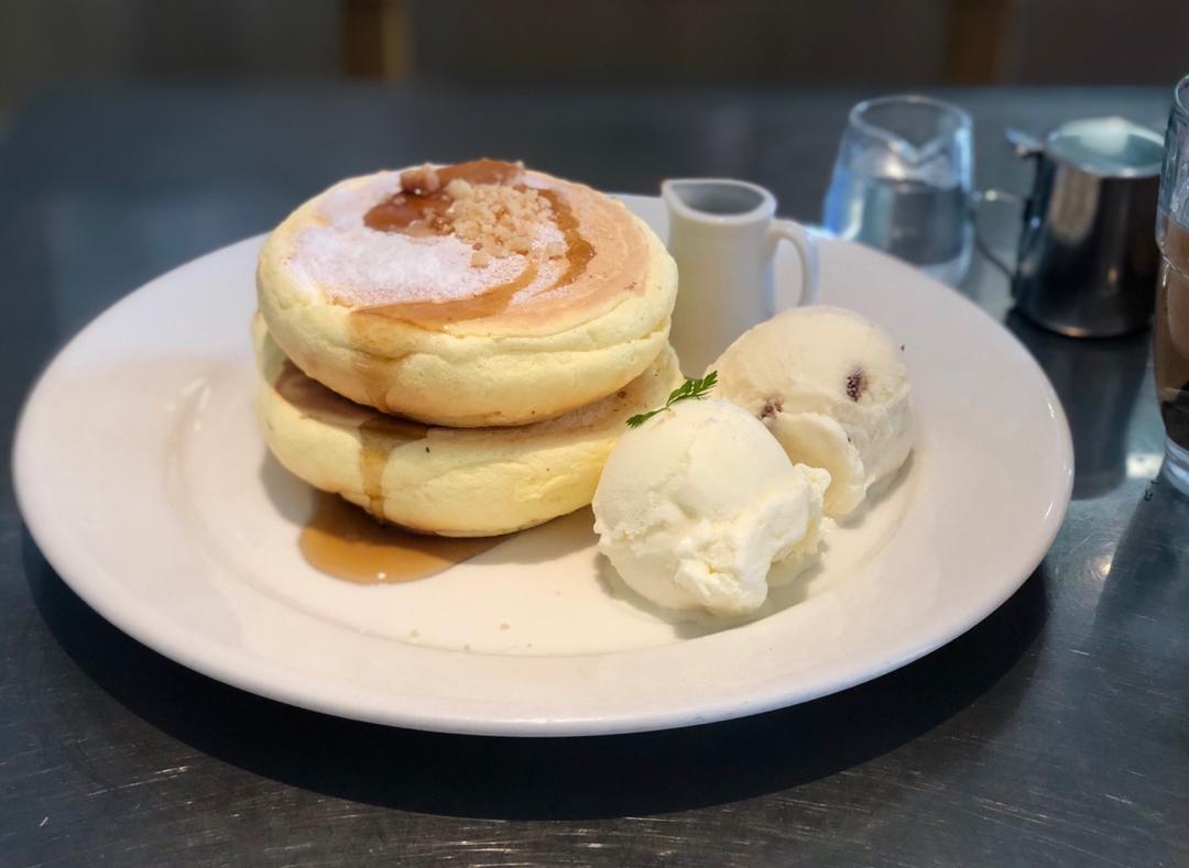 图二是没被我一叉子戳瘪时的样子 松饼狂魔本魔 为了吃这个 冒着中暑风险大中午走到原宿 其实没rainbow panca...