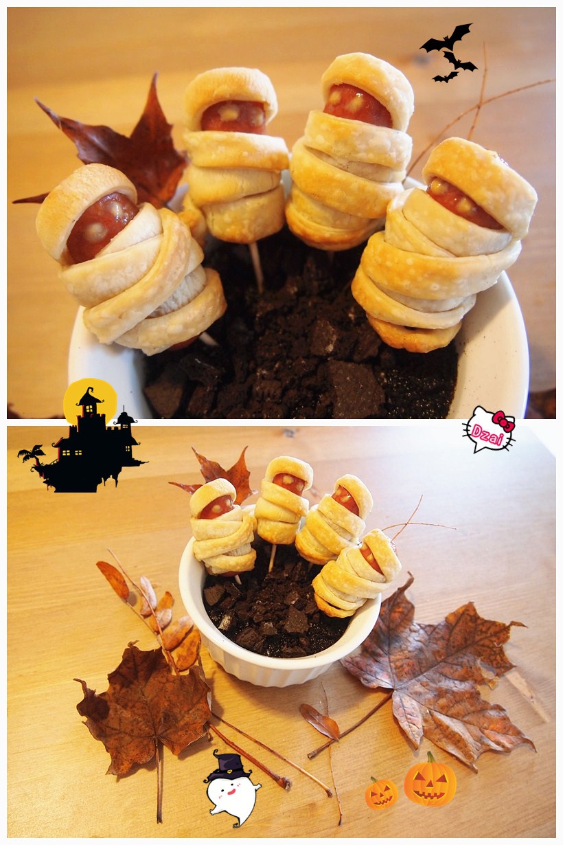 很快就到萬聖節啦。做個熱狗木乃伊應應景。碗底是原味酸奶跟奧利奧碎。配上鮮榨果蔬汁。今天的下...