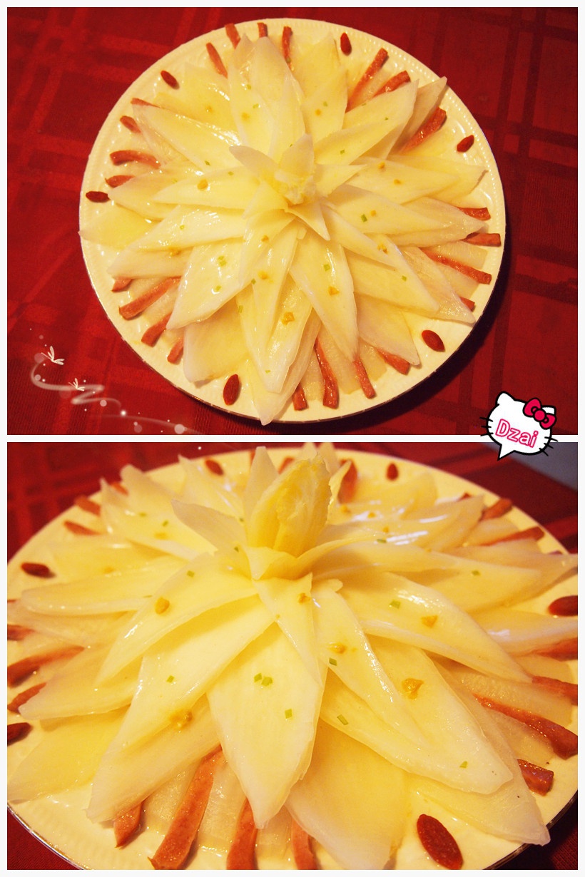 熬了高湯就爲了做這個。造型漂亮但是太費功夫了。切蓮花瓣的時候小心翼翼的。眼睛都快不對焦了。...