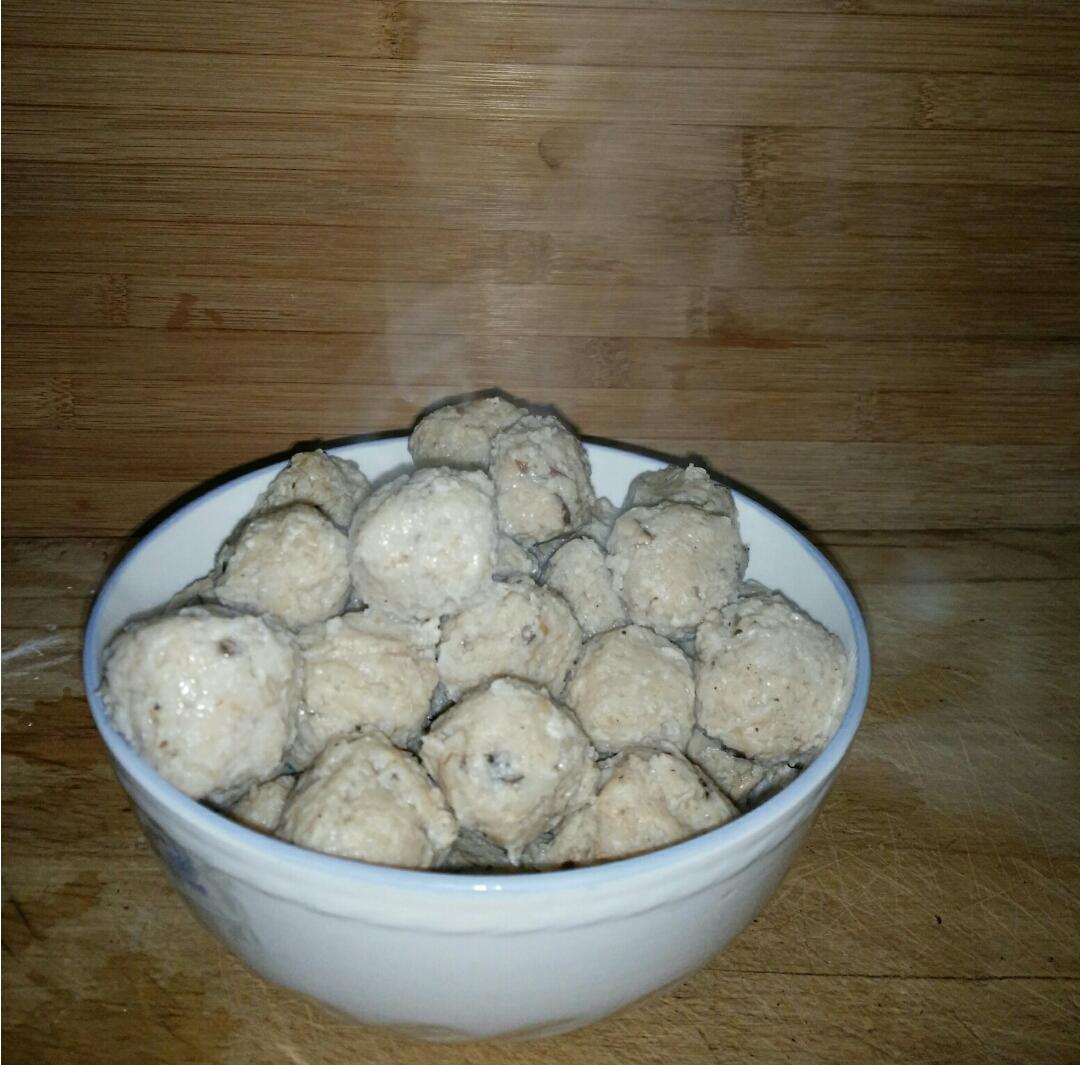 藕香鸡肉丸,为明天的午饭做准备。第一次做丸...
