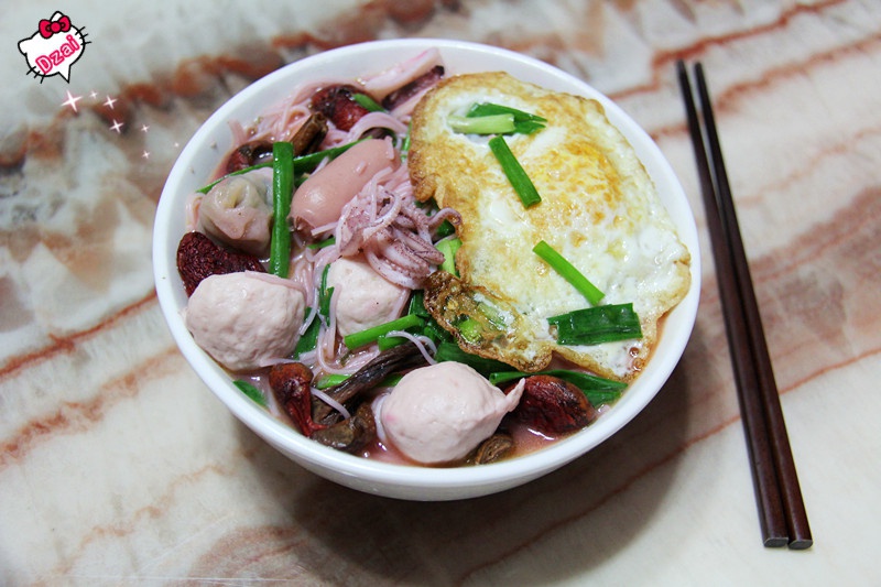 晚餐~海鲜米粉汤!小鱿鱼好好粗啊好好粗!!