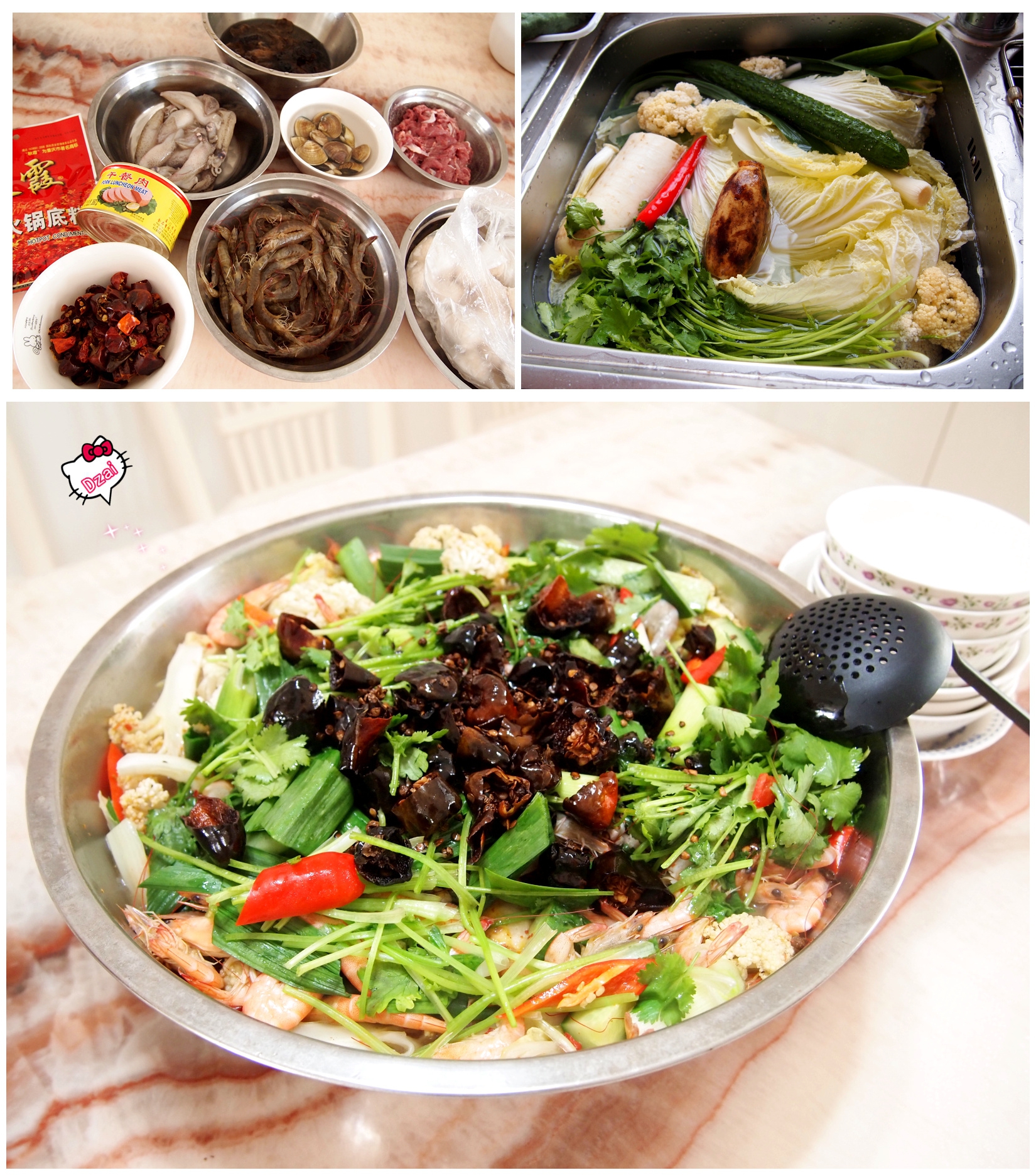 吃到停不下来的水煮好多鲜!!虾+小管鱿鱼+文蛤+瘦肉+午餐肉+鲨鱼丸+豆腐+白菜+花椰菜...