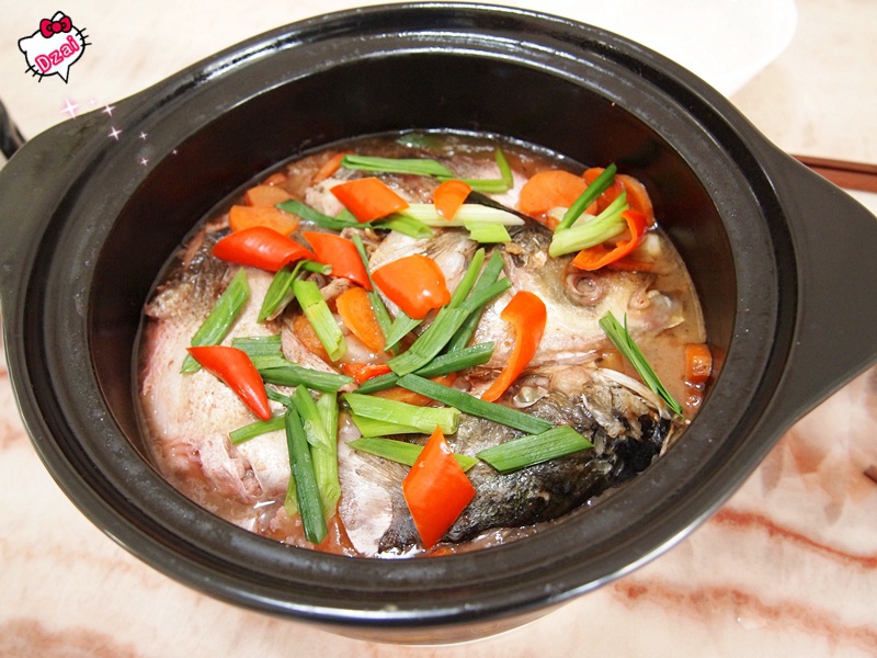 李锦记海鲜酱做的鱼头煲是全世界最好吃的鱼头煲。下面放了好多白菜~花椰菜~胡萝卜。(放豆腐...