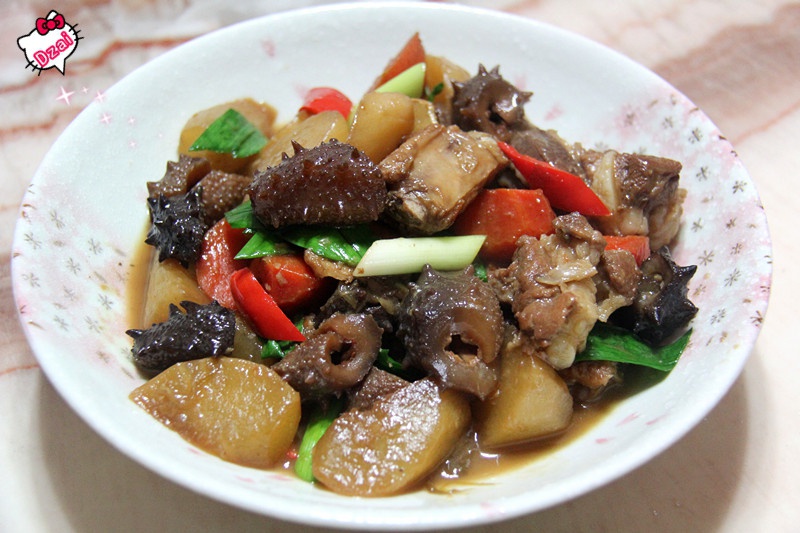 海参炆排骨。萝卜和香菇超入味的。全部清光光。好吃!!