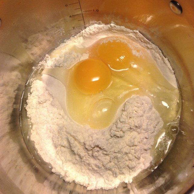 揉面时加两个蛋。