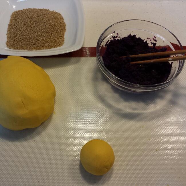 将面团分成核桃大小的小块
