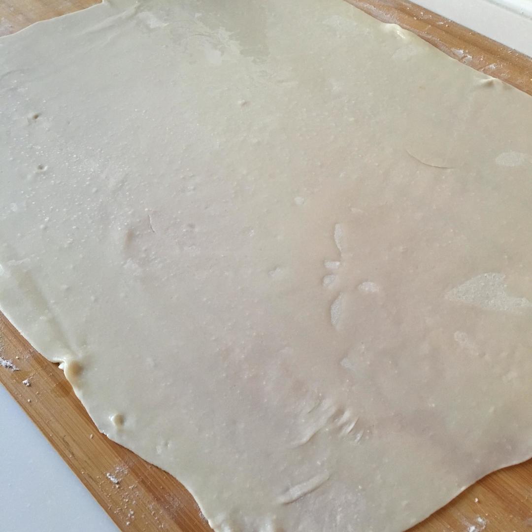 全部卷好后擀成圆饼/不要太用力擀这样会把层次压死的