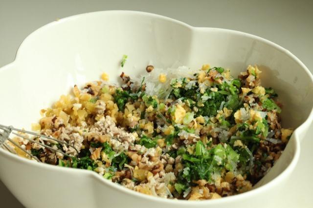 所有的馅料搅拌均匀,可以拌点麻油,扮好的的馅料可以直接尝尝咸淡,一般最多再加一点点盐,味精放不放也无所谓