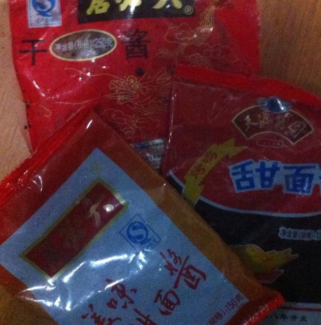 加入甜面酱,干黄酱半袋,搅拌均匀。