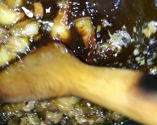 加入蒜瓣,闻到蒜香时,继续搅拌5分钟,关火。