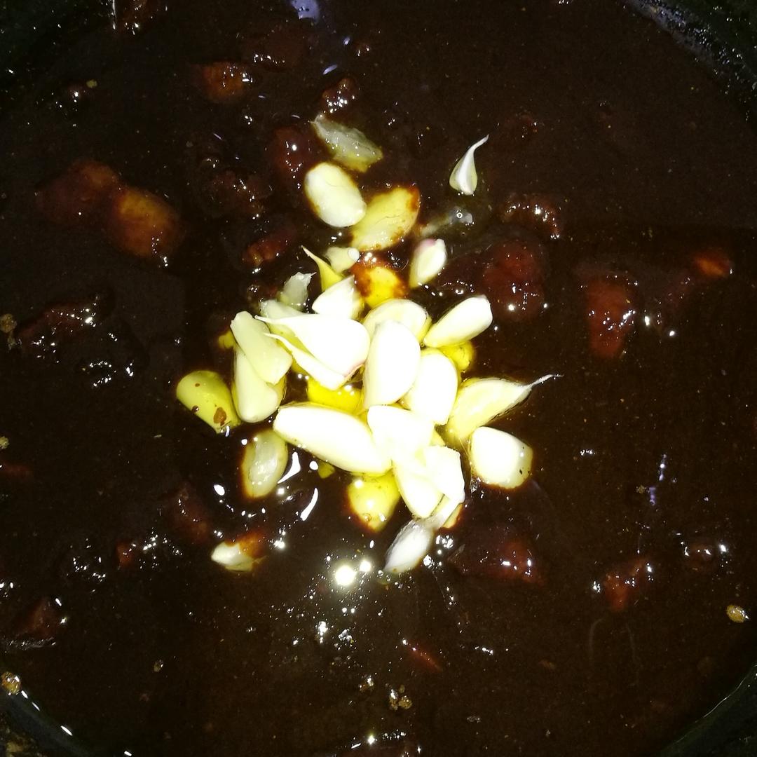 加入黄冰糖,生抽酱油,料酒。