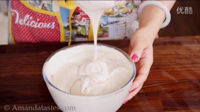 将全部材料混合搅拌,打发淡奶油