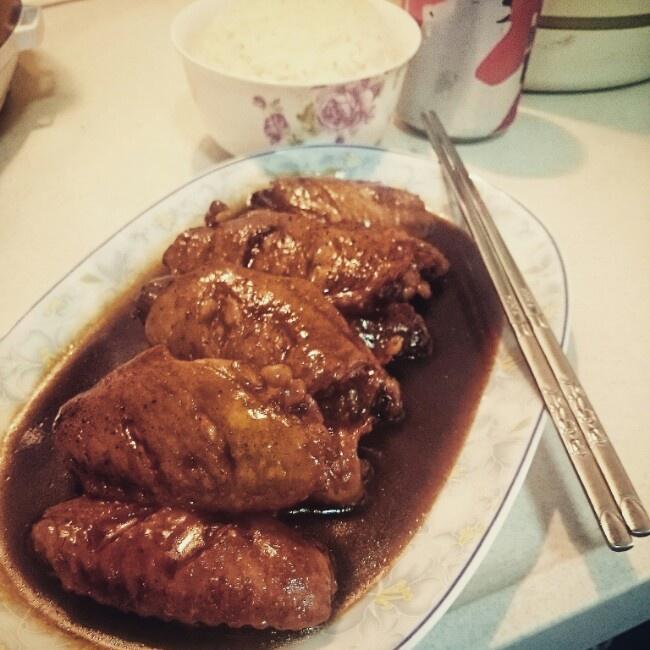 锅放少许油(没有可不放)烧热,先把姜片爆香,再把每个鸡翅都放锅底焙一下,一般在宿舍的话,我怕鸡翅不新鲜,会先过一次水焯一下。os:这一步手机不在旁边,没有拍照~