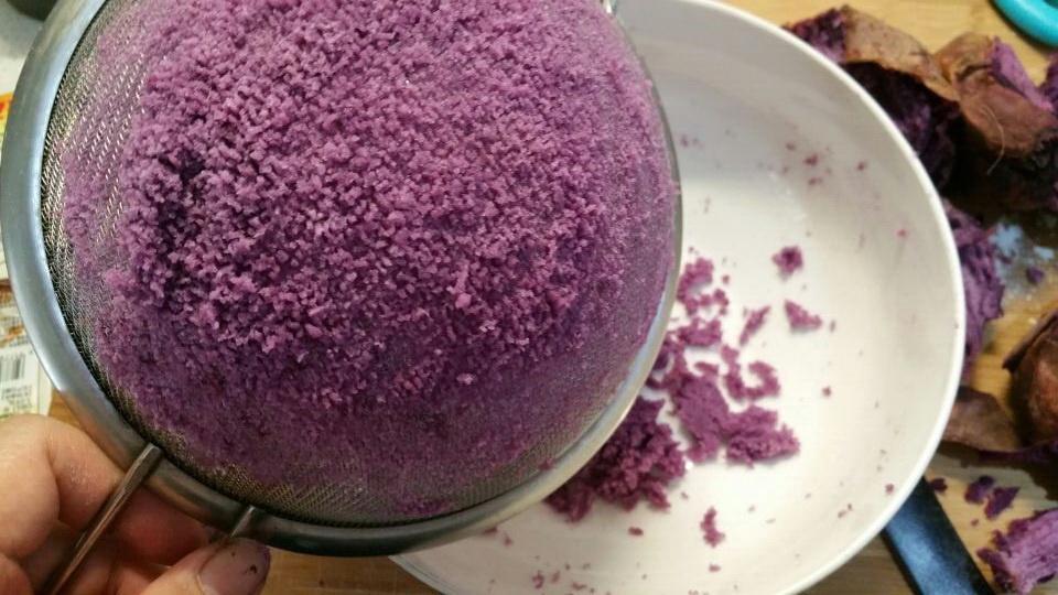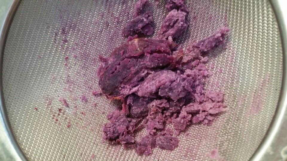 过筛,这一步你可以不做,只要磨成泥即可,因为太太太费劲了,4个紫薯我弄了一个多小时,身为爱自虐的大射手就是这么任性~