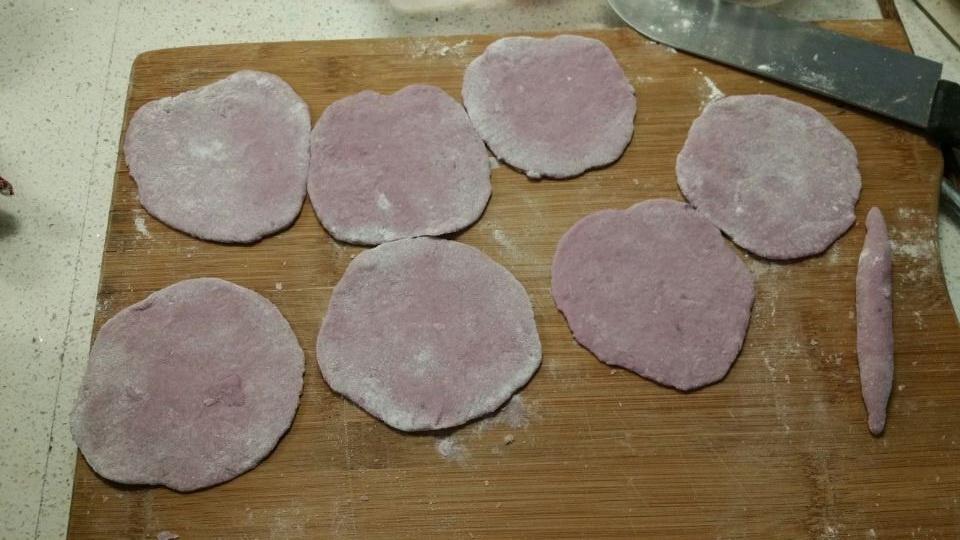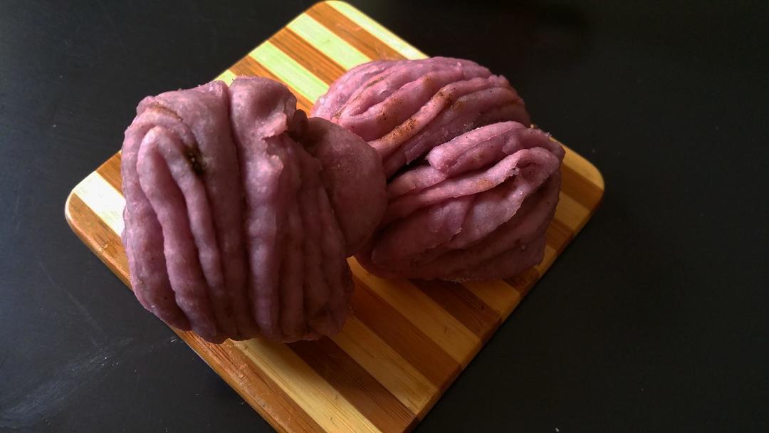 1. 面粉、紫薯、和水的比配完全靠感觉,面粉种类不限吧 2. 如果不过筛就尽量吧紫薯捻的细一些