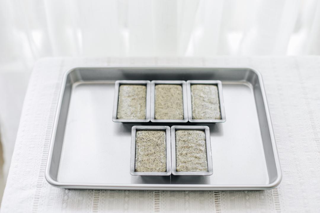 装进模子,烤箱预热180度,等面糊回温后放中层烤10-15分钟,上色即可