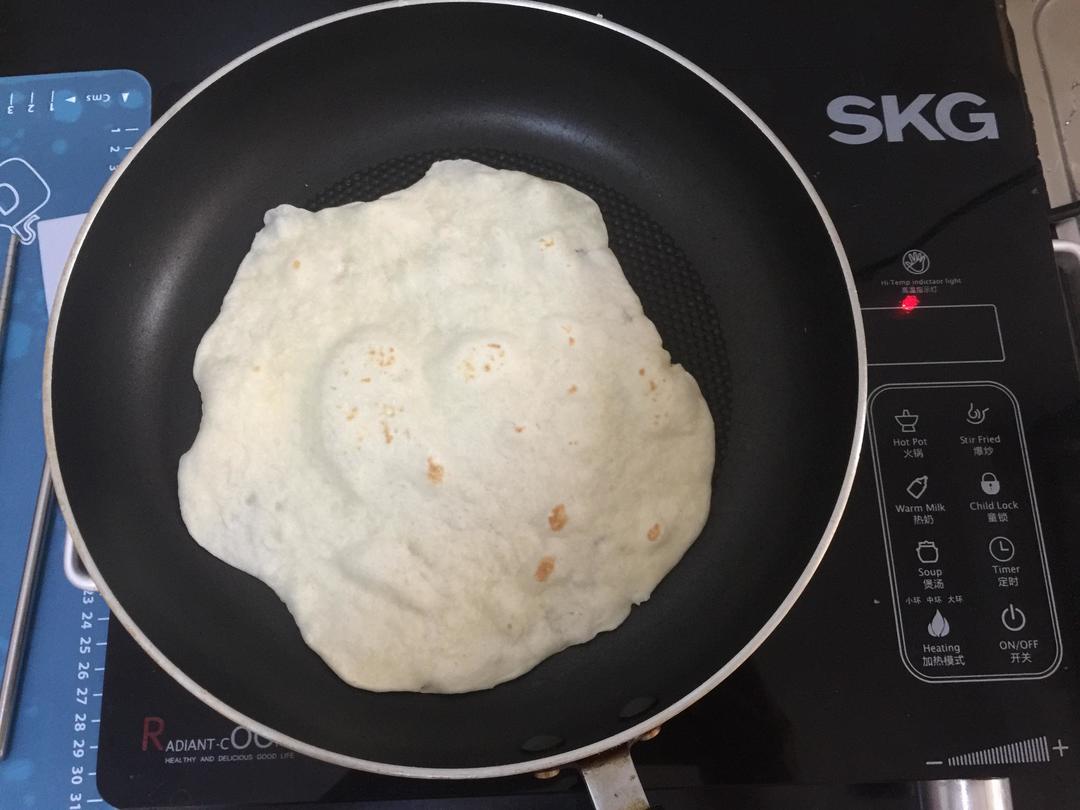 1.擀面时,面皮容易黏在擀面杖和手上,建议用点油或干面粉涂在上面即可避免; 2.将切成小块的面团放置10分钟后再擀成面皮,这样烙出来的饼皮更松软可口; 3.烙饼皮时,勿用小火烧,易致使饼皮失去水分而变得干硬。饼皮出锅后立刻用保鲜膜或保鲜袋包住,避免风干而变硬。 4..可根据个人口味来准备馅料,如加煎鸡蛋、放辣椒油、甜面酱等。