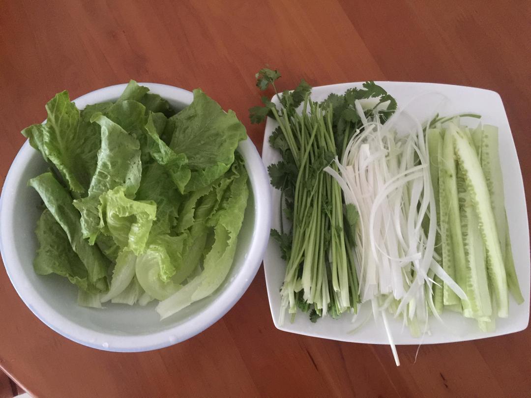 最后一道工序就是将菜、肉放进饼皮中卷好,开吃。😄