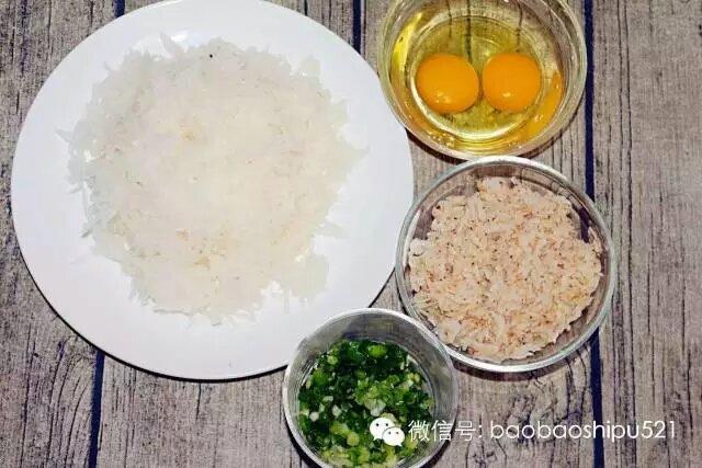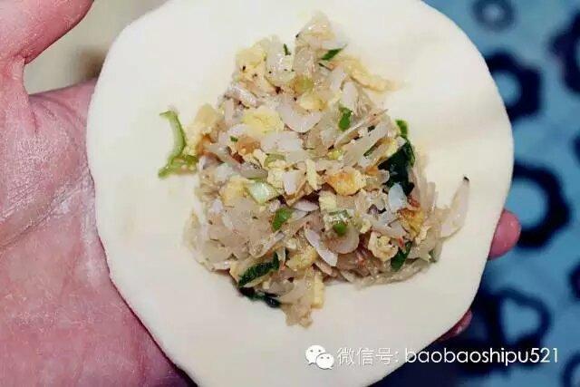 和陷:将白萝卜丝、虾皮、鸡蛋碎、香葱沫放到一起,加入少许盐及调料,2勺香油,酱油1滴,搅拌均匀。