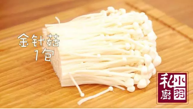 ▲同样的方法,再卷一个金针菇卷,具体放到多少,你根据喜好来。