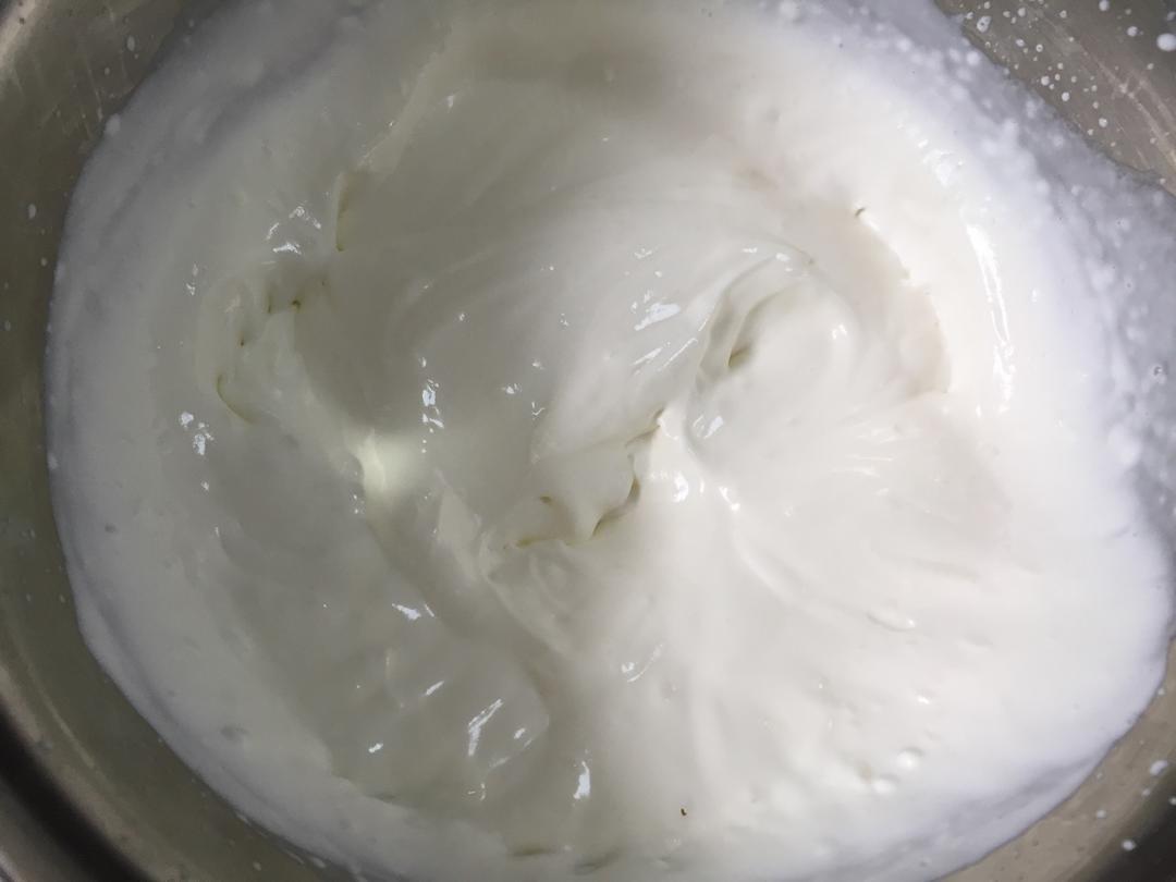 打发200克白色奶油,大概就是七成发左右(刚有点形状即可)。