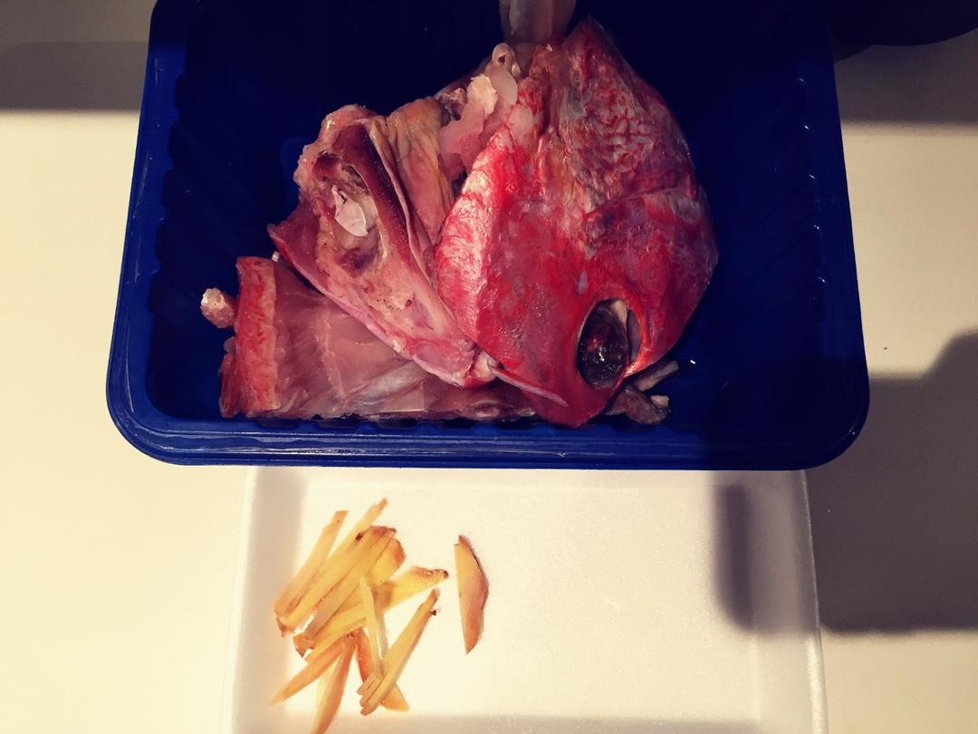 海鱼头洗净切块,准备好姜丝