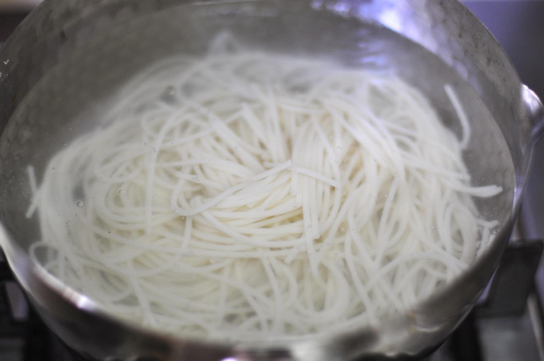 锅中烧开水,将泡好的米线放入锅中,煮至自己喜欢的软硬度。