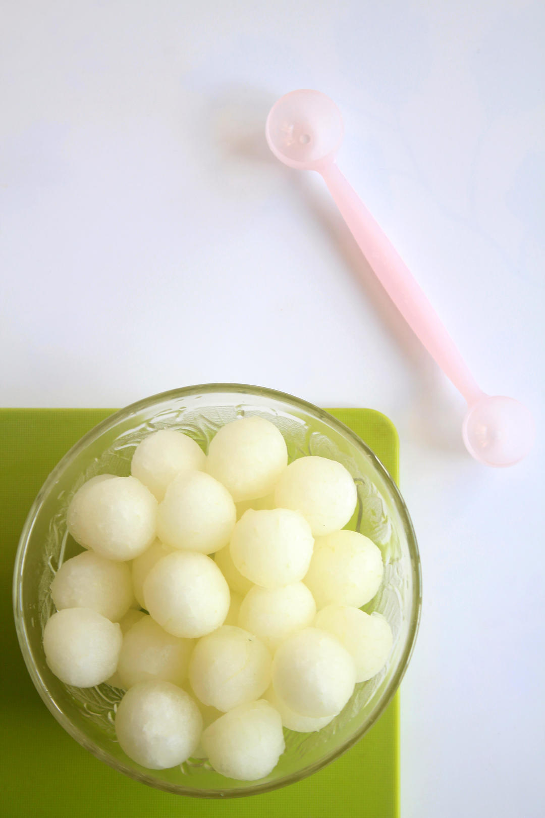 大块的冬瓜用球器挖成丸子状。