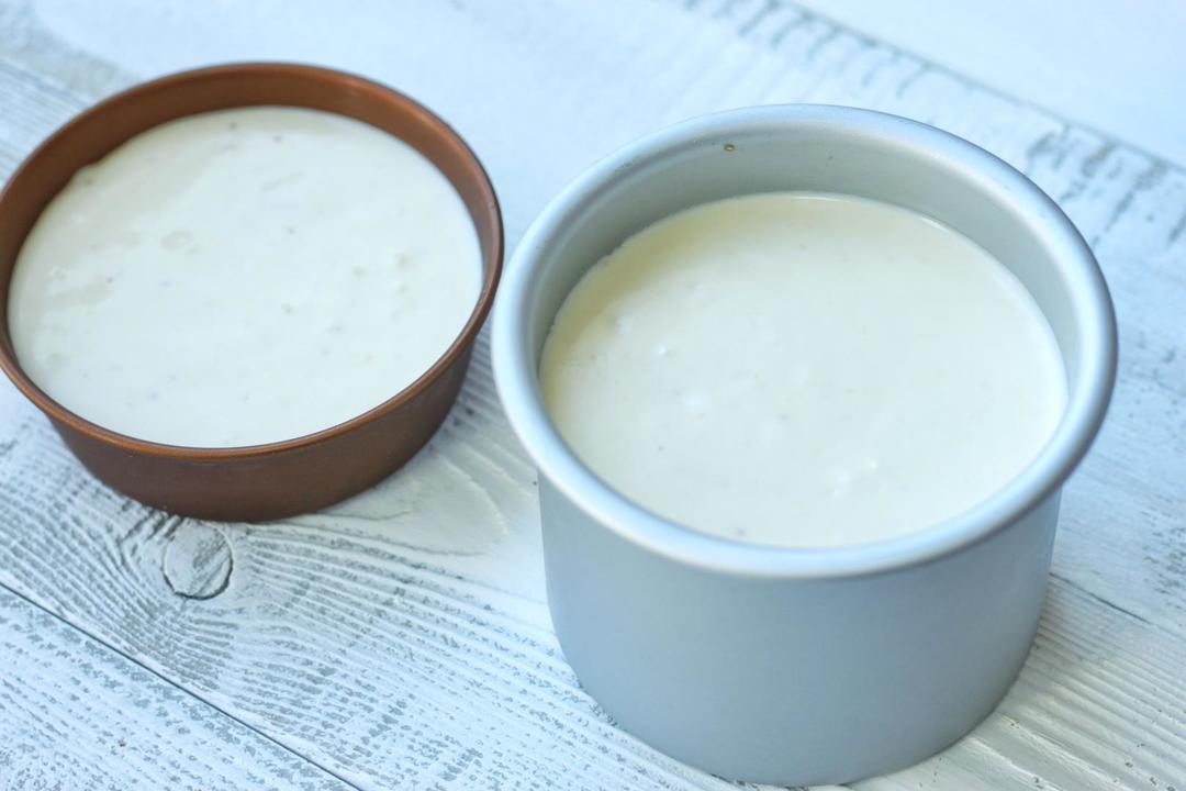 取出冻好的模具,将奶酪糊倒入其中,轻轻震出气泡~覆盖保鲜膜,送入冰箱冷藏,3、4个小时后取出脱模即可食用。