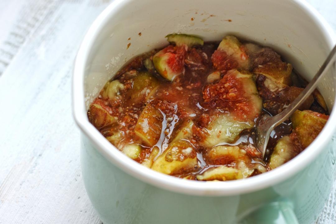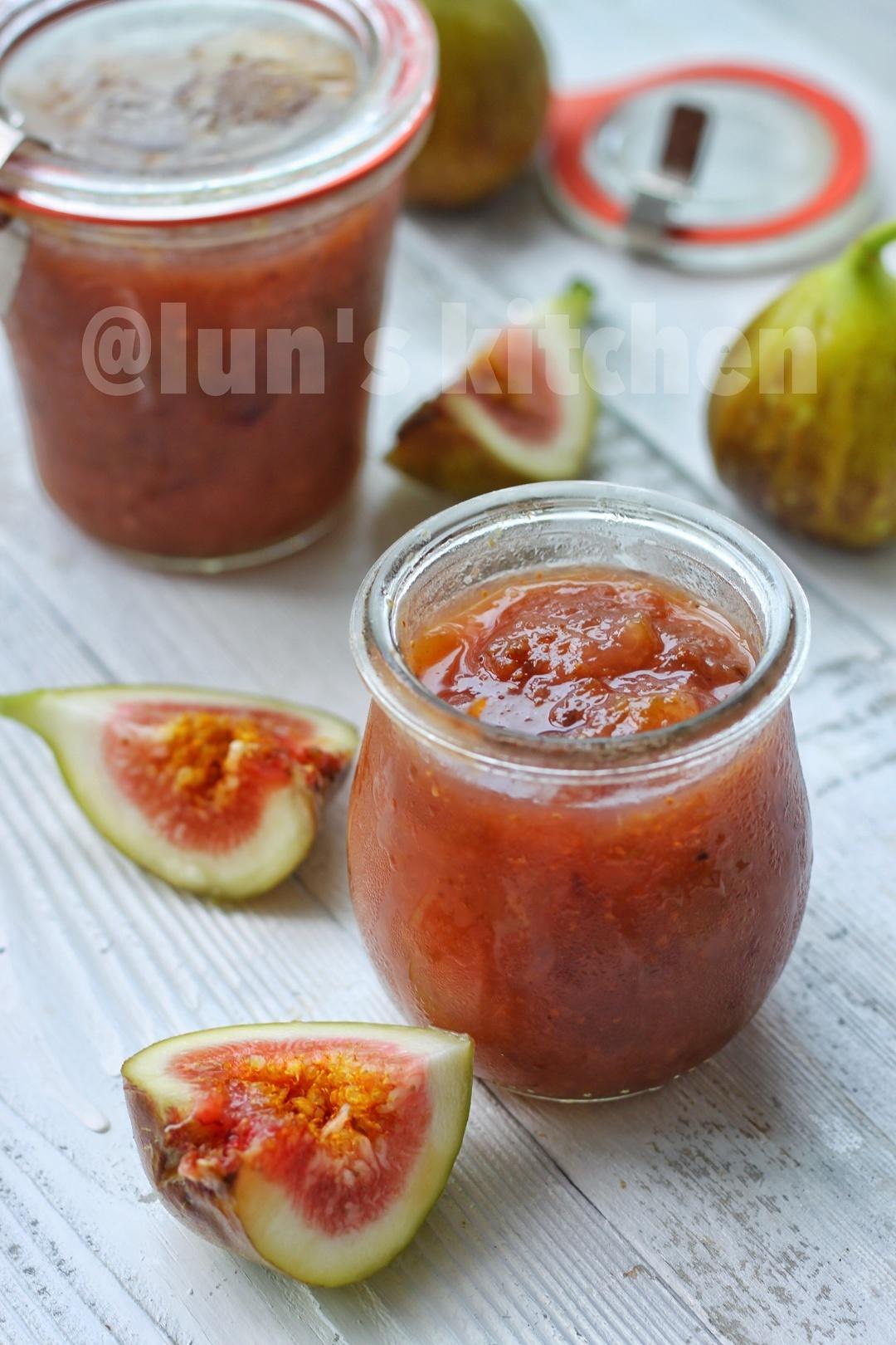 无花果果酱熬制。(配方中的量做完之后肯定蛋糕用不完,请密封保存、你可以用来抹面包、拌酸奶、调苏打水等等)
