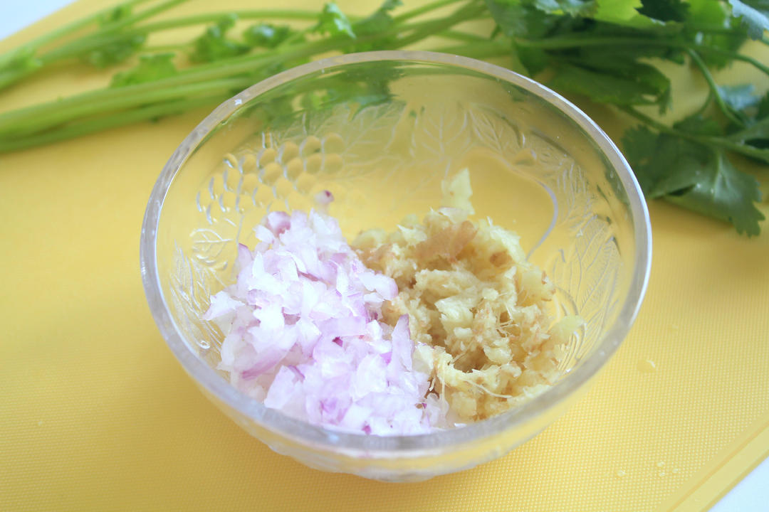 生姜磨成蓉,红葱切成粒。