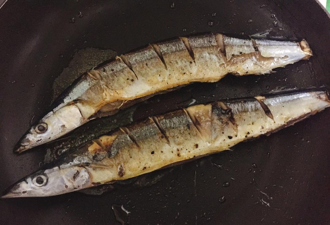 秋刀鱼属于海鱼,所以在放盐的时候要减少量噢🐟