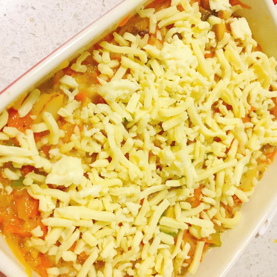 表面铺一层马苏里拉奶酪丝,进烤箱200° 20分钟~
