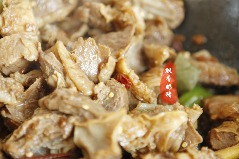 下入一小勺黄豆酱,继续翻炒香。 注意:网上,各个超市都可以买到黄豆酱。