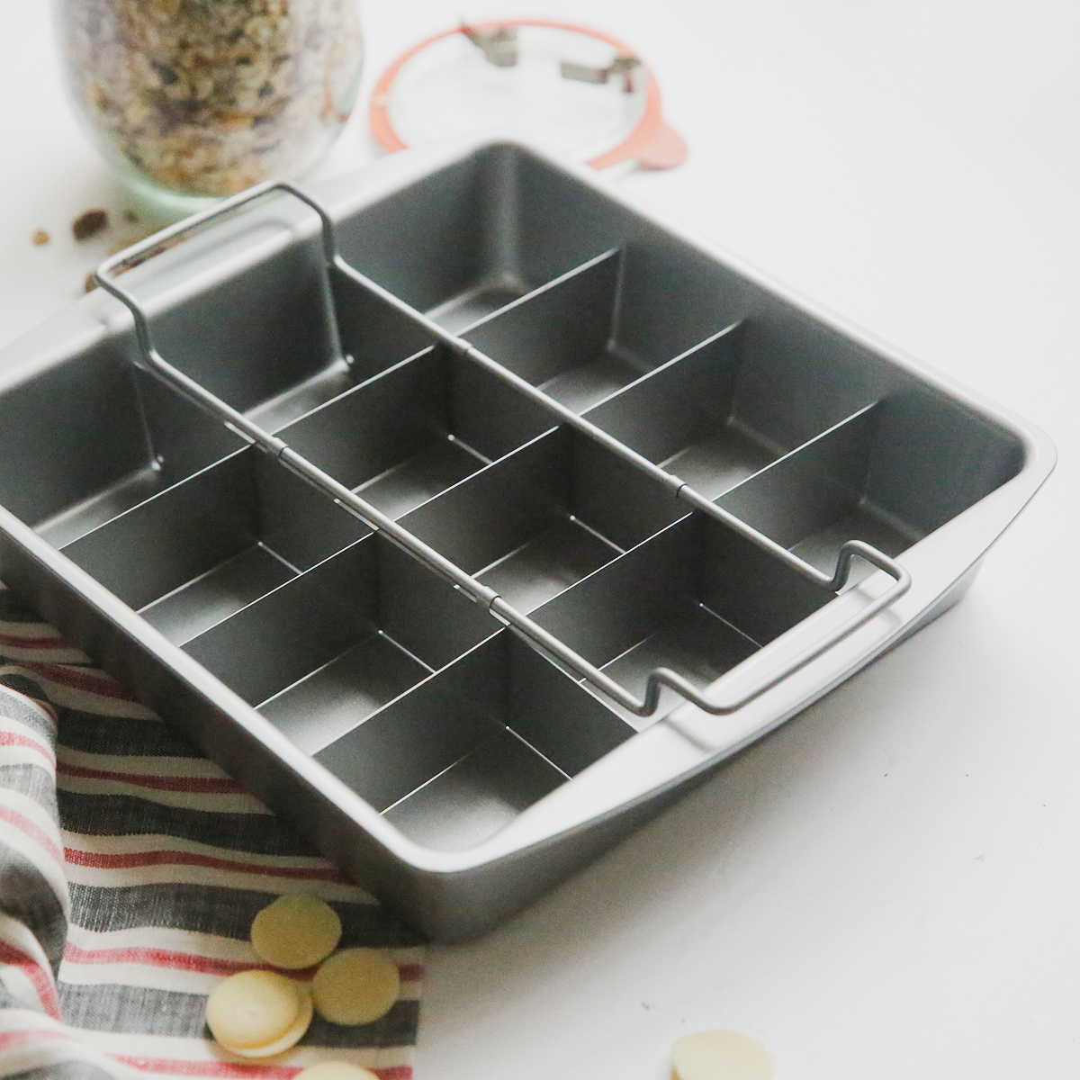 布朗尼蛋糕模:顶部外长:27.3cm,宽24.2cm,顶部内径长宽:22.8cm,底部长,宽:21.5cm, 烤盘高:5cm