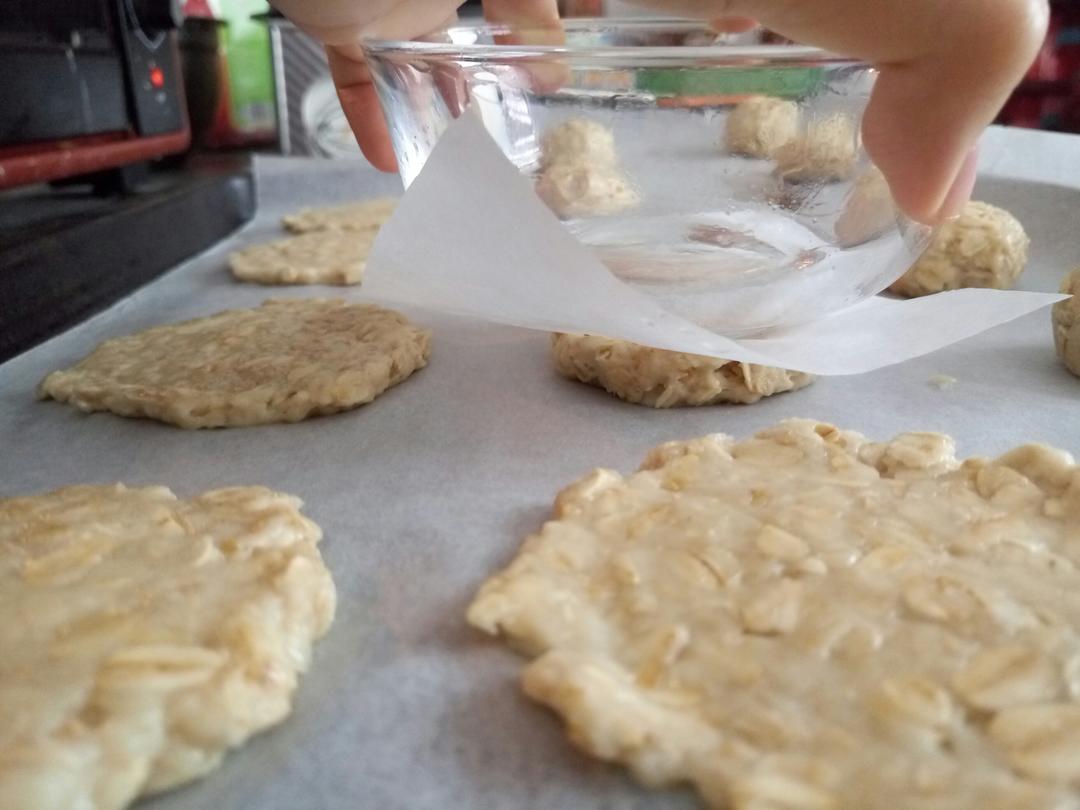 我用的是桂格原味快熟燕麦片~ 压的饼坯不要太厚 否则需要延长烘烤时间哦! 如果希望口感更脆 建议: 1,把小团子压扁一些; 2,烤制结束后,利用烤箱预热继续闷十分钟再出炉
