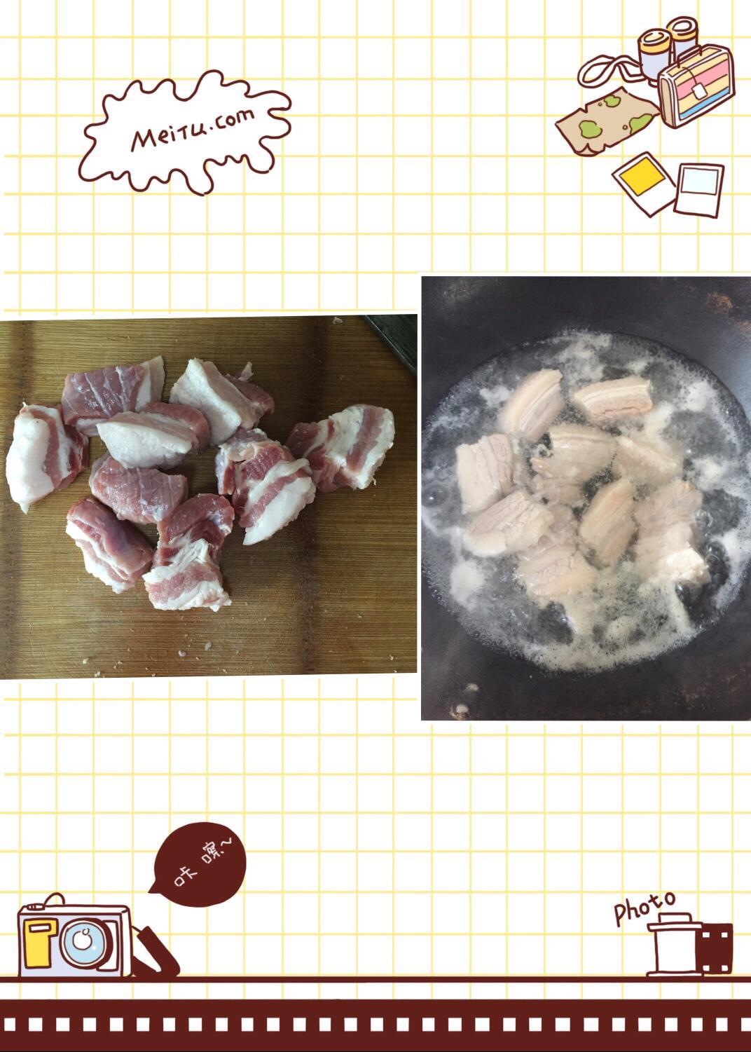 五花肉,一定要带点肥的,开水汆烫一下