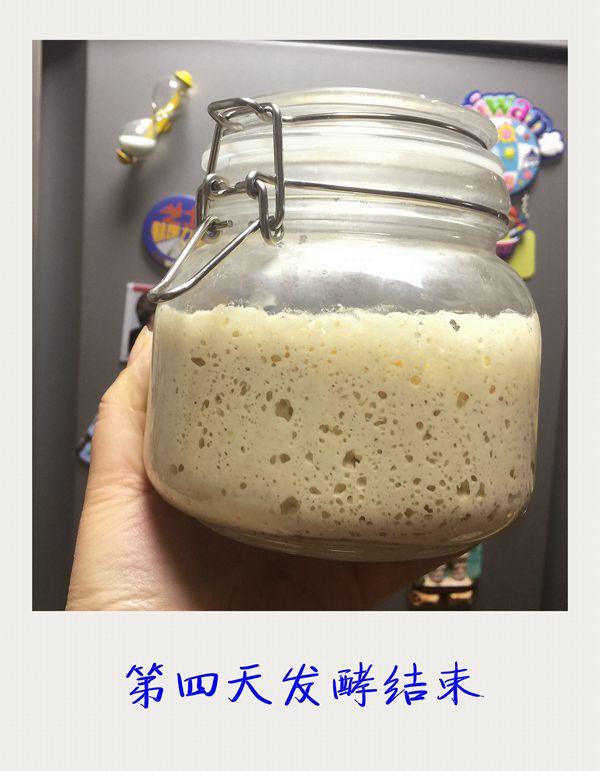 第四天:重复第三天的操作。发酵时间应该比第二天短。就是说涨到相同高度的时间不用12小时了。这基本可以说天然酵种养成了。